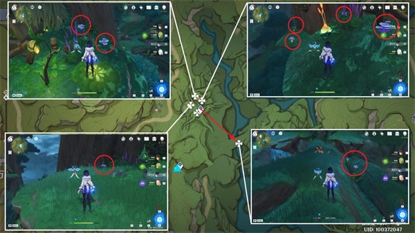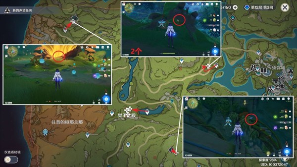 (7)降诸魔山洞窟大多分布在上层平台或藤蔓区域,利用四叶印能快速收集,总数为6个。
