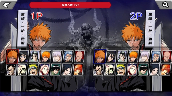 3、挑选对战角色,分为1P和2P,其中1P由玩家操控,2P则由电脑接管操控权;