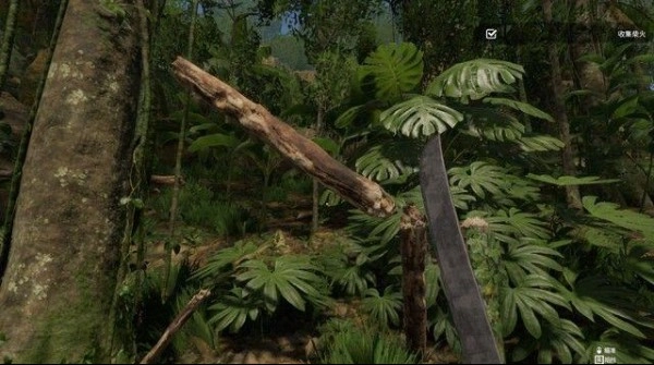 首先,通过砍伐树木获取圆木,将圆木竖立在地面后,接着去寻找长木棍。长木棍的掉落概率相对较低,也可以通过对圆木进行二次加工(继续砍伐)来获得。最后,收集棕榈叶用来搭建小棚屋,以此保存当前的进度。