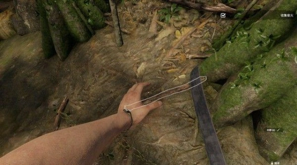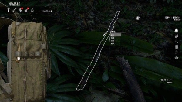 手上这把短刀的战斗效果不太理想,要是想更有效地对抗敌人,你得换一把更长的武器才行。去和地上的长木棍进行互动,把它做成简易的长矛。要注意,别选采集选项,不然长木棍就会变成普通木棍了。
