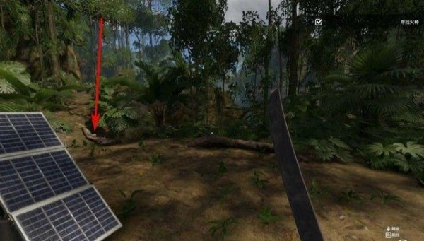 如下图箭头所指的位置,依旧是太阳能电池板附近,在前方就能看到船子草。随后进入制作界面,用船子草的叶子制作成绷带并完成包扎,接着推进后续剧情。