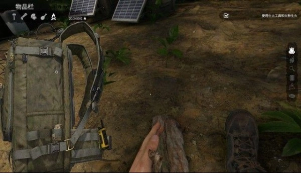 收集好鸟巢后,打开背包,右键点击生火器启动它,接着把鸟巢拖到生火器的插槽里来生火。之后将火种放入火堆中,火堆就能被点燃了。