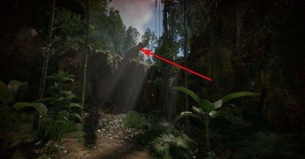如下图所示,你能在周边看到香蕉树(结有红色果实的便是),采摘树上的香蕉即可——这是最简易划算的食物,能用来填饱肚子。