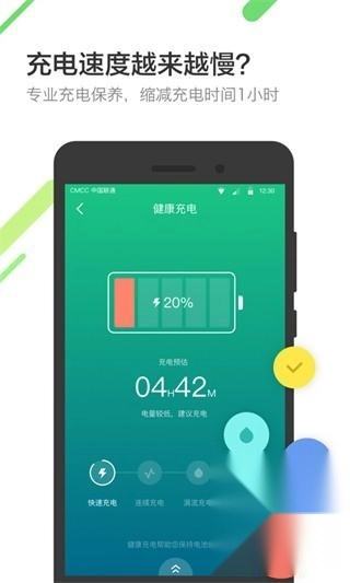 全循环充电:引导用户分快速充电、连续充电、涓流充电三个阶段为手机进行科学充电