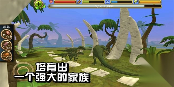 1、组建一个家庭——通过繁殖壮大并建立属于自己的恐龙家族,称霸侏罗纪时代!既要繁衍后代,也要寻觅食物。