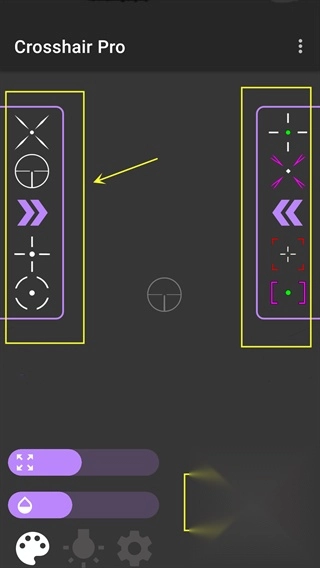 3、当然软件内的准星类型远不止展示的这些,你可以点击下图中的箭头按钮来查看更多准星类型。
