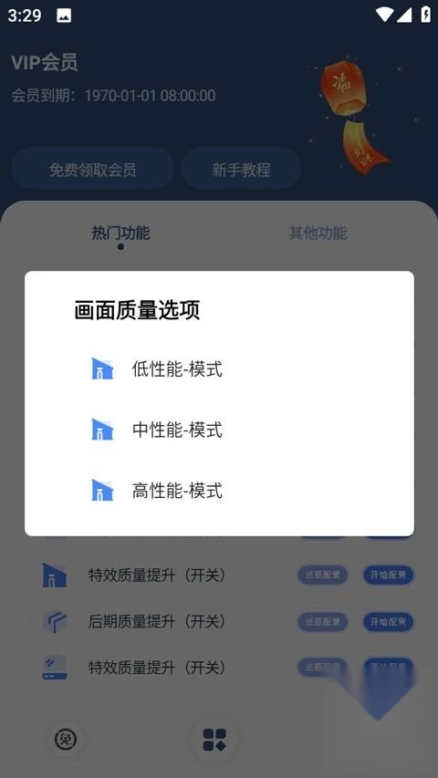 3、每种功能均提供低性能、中性能、高性能三种模式供选择