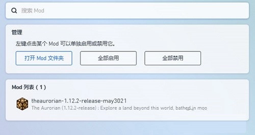 3、添加操作完成后,只要MOD文件状态正常,pcl2启动器就会自动对其进行识别,并在MOD列表里呈现出来。