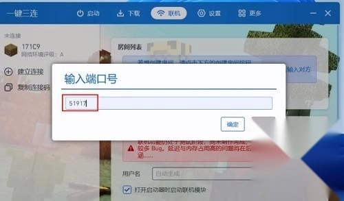 5、创建成功后,左下角的消息页面会收到一串数字,这串数字就是PCL2启动器的端口号。