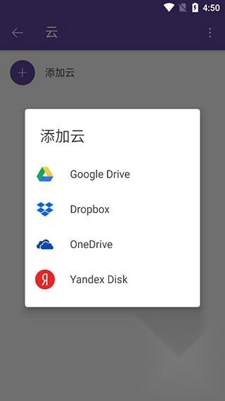 6、点击“云”选项,接着选择“添加云”,找到你需要使用的云盘后,登录对应的账号,就能在主页查看该云盘内的内容了。