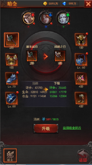 6、大量的组团刷BOSS的挑战,设计了海量的神装掉落,玩家即使是不氪金也能获得神器。