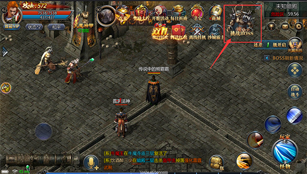 1、在游戏中点击图中所示按钮,即可开始挑战boss