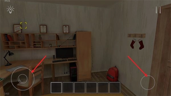 进入游戏后,你会置身于自己的房间里,左侧摇杆可操控移动,右侧按钮能实现起立与下蹲的动作。
