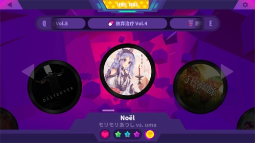 各难度级别过渡平缓,作为一个音游小白,我觉得非常容易入手,并且能从这种平缓的难度提升感觉到了自己的成长。