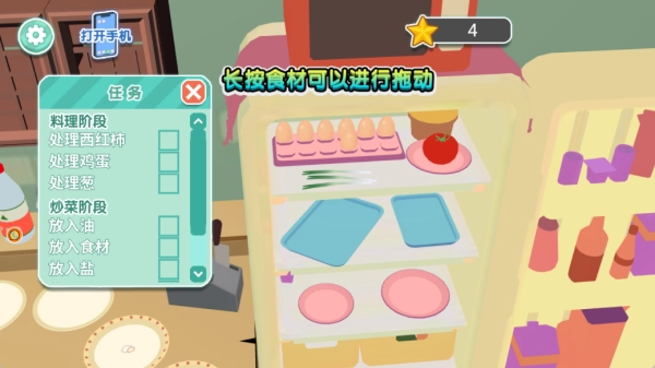 4、长按食材可以将食材进行移动,玩家要根据任务要求来进行食材处理,不能出现烹饪顺序错误。