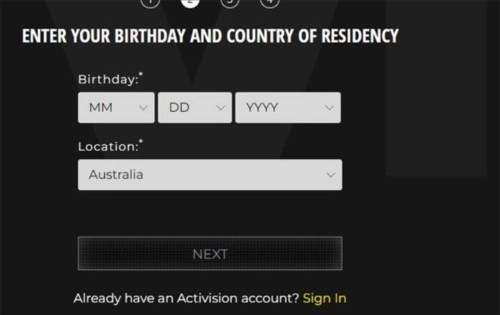 步骤四:依次选择生日的月、日、年(需确保已成年),并选择所在地(推荐选择澳大利亚 Australia)