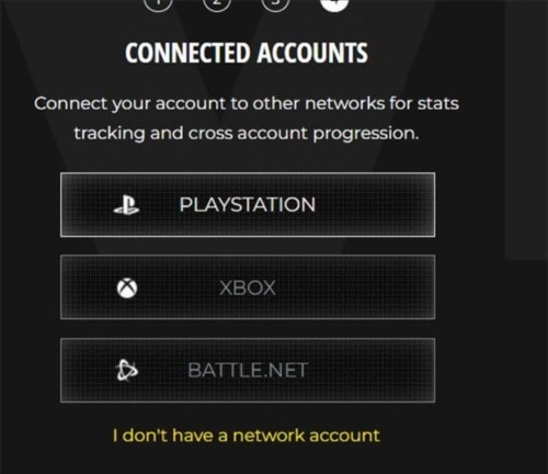 步骤七:依据实际情况挑选要绑定的账号,可选范围为【PS/XBOX/战网】,要是没有相关账号,就点击黄色的小字“跳过”选项。