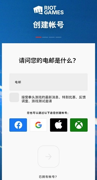 不管你使用的是苹果设备还是安卓设备,都得注册一个拳头账号。这个账号也就是你的游戏账号,主要用来登录游戏,同时还能保存你的角色信息和游戏进度。