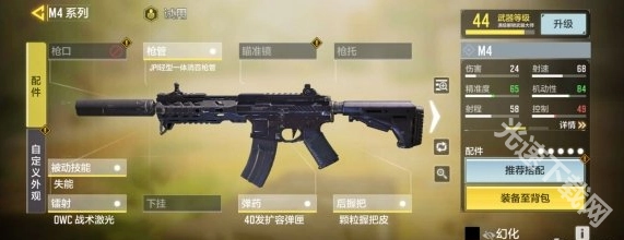 这里要推荐给战士们的M4配件搭配思路和ICR是一样的,选择JPI轻型一体消音枪管、无枪托、OWC战术激光、40发扩容弹匣以及颗粒握把皮,这样能提升M4的机动性和射程。
