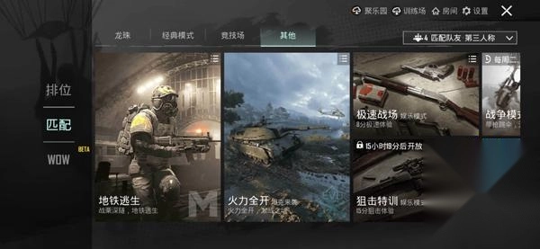 1、打开PUBG MOBILE游戏后选择游戏模式,在其他选项里找到并切换为地铁逃生,点击进入;切换完成后,后续再次进入游戏时会默认进入地铁逃生模式,不用重复切换。