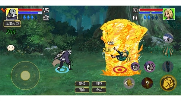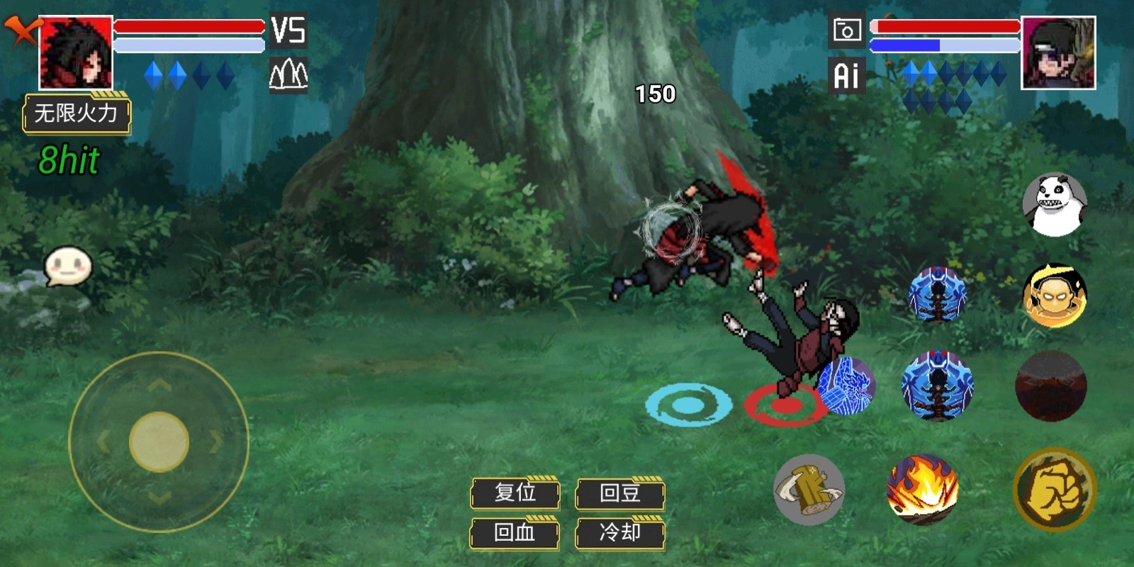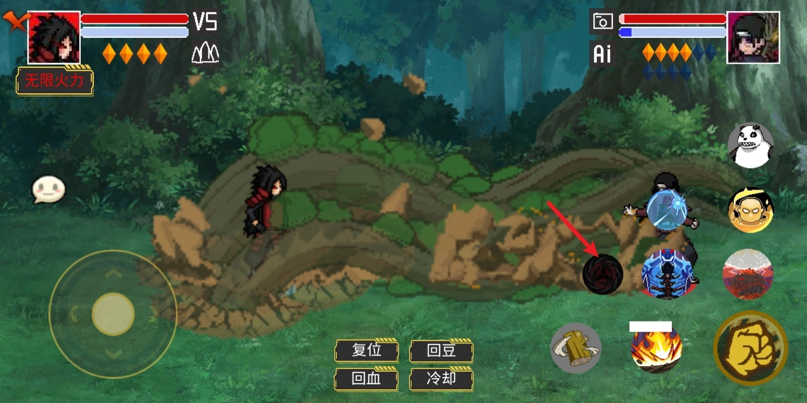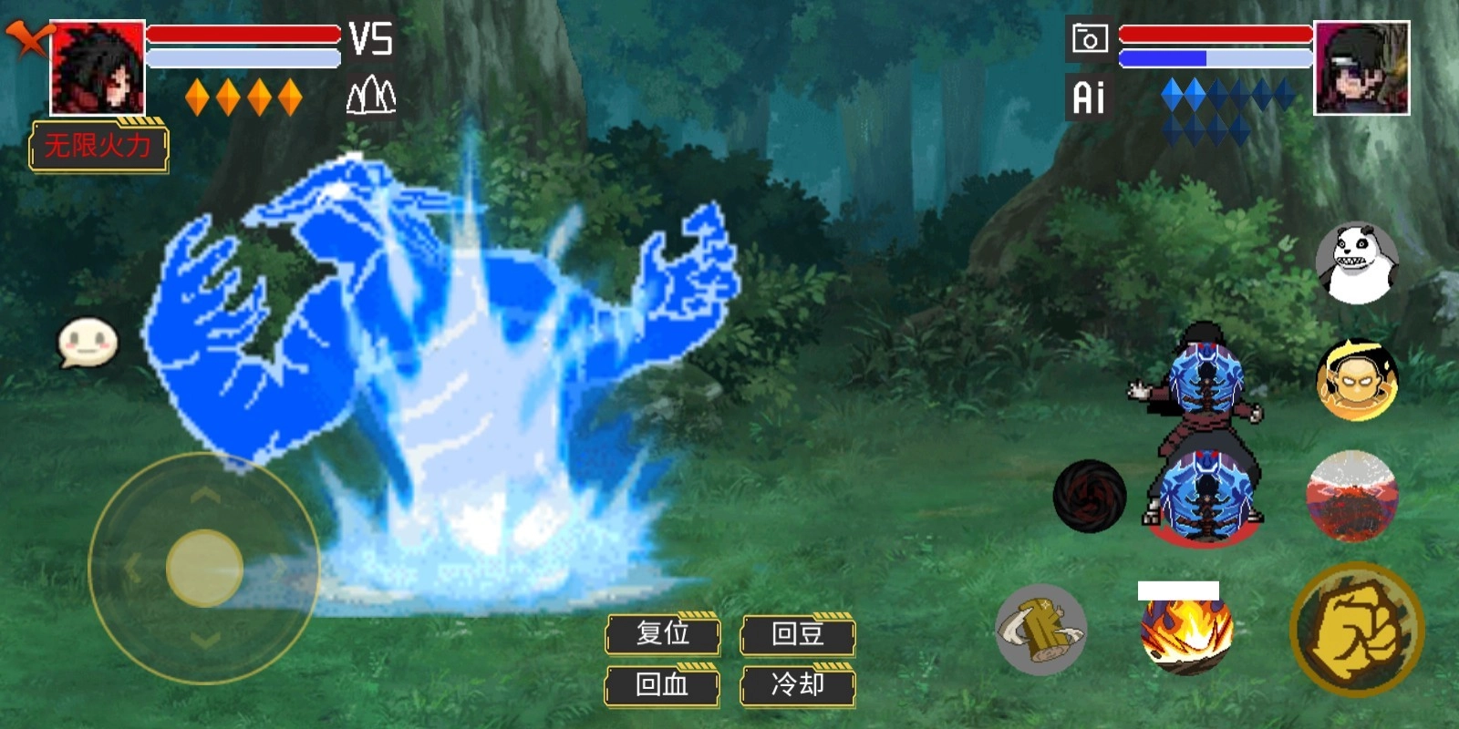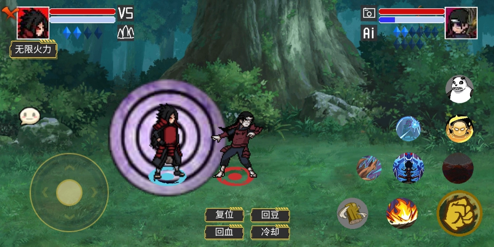1、游戏采用像素风格对火影忍者中的人物进行还原,使你能够自由选用这些角色。