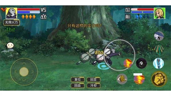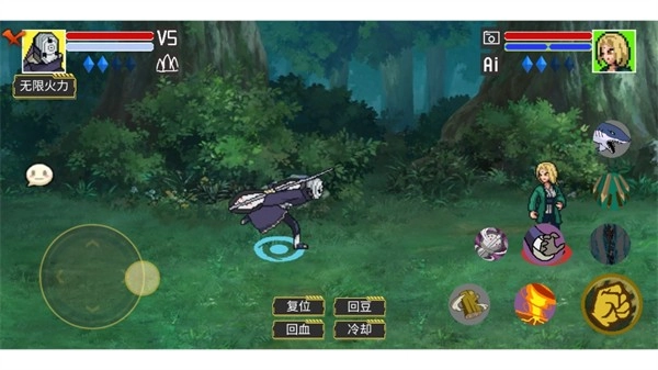 2、借助右侧的虚拟按键,玩家能够施展出各种各样的忍术攻击,不过每个忍术都存在冷却时间。