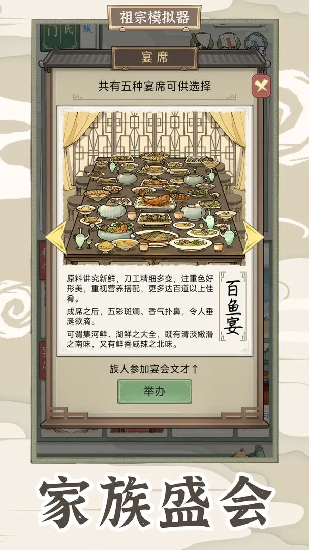 3、丰富多样的家族玩法,你可以在这里推选族长,操办后辈的成人礼和婚宴等活动。