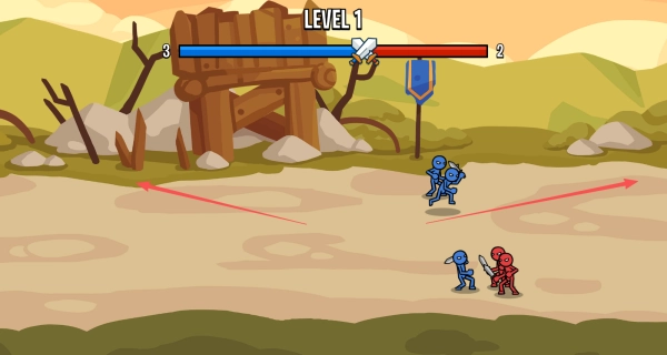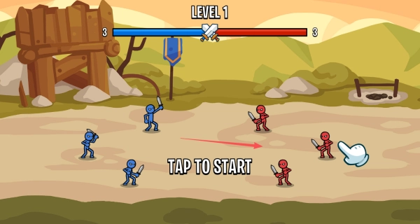 1、点击屏幕开启对战,操控火柴人军团与敌方军队交锋,快速进入紧张刺激的战场节奏。