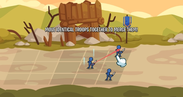3、备战阶段将两个相同士兵合并,解锁更高等级单位,逐步强化军团战力与技能多样性。