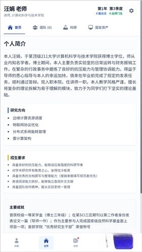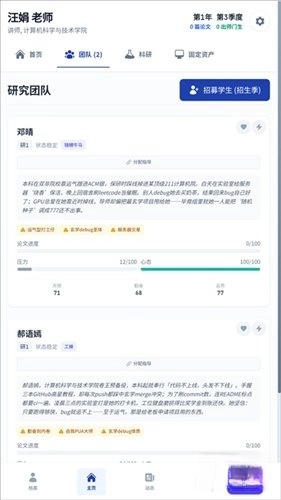3、游戏界面模拟高校设计,包含个人简介、研究方向、招生要求等核心模块,细节拉满。