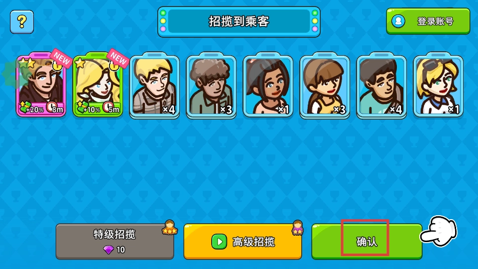 3、招揽到乘客后,点击【确认】,确定乘客,继续游戏。