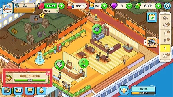 1、可点击将餐厅升到3级的按钮提升等级,为后续经营解锁更多功能。