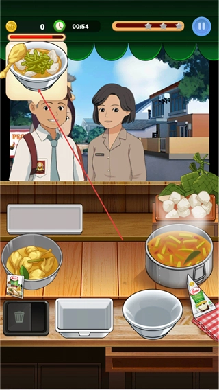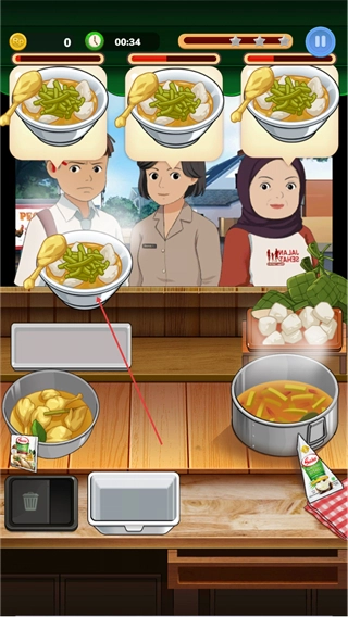3、持续制作并递送鸡肉粥,满足多位顾客需求,提升金币获取量。