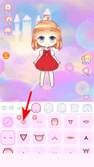 3、紧跟红色箭头指引,选择界面中的唇妆样式,为角色更换唇部装扮,逐步完成角色的面部装饰搭配。