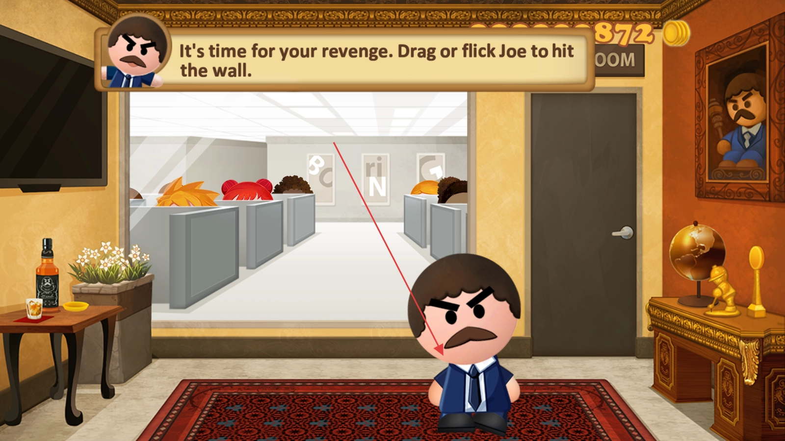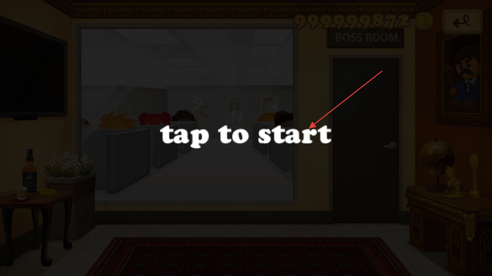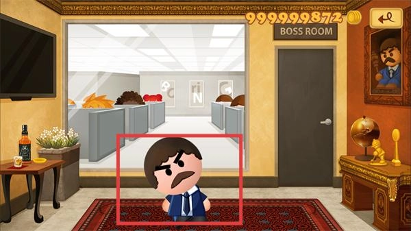 1、进入游戏主场景,可看到办公室及“BOSSROOM”标识,准备开启与老板的互动玩法。