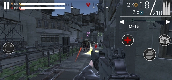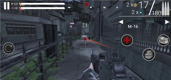 3、遇到僵尸敌人时玩家需要及时调整方向进行瞄准射击,优先清理靠近的威胁避免被围攻。