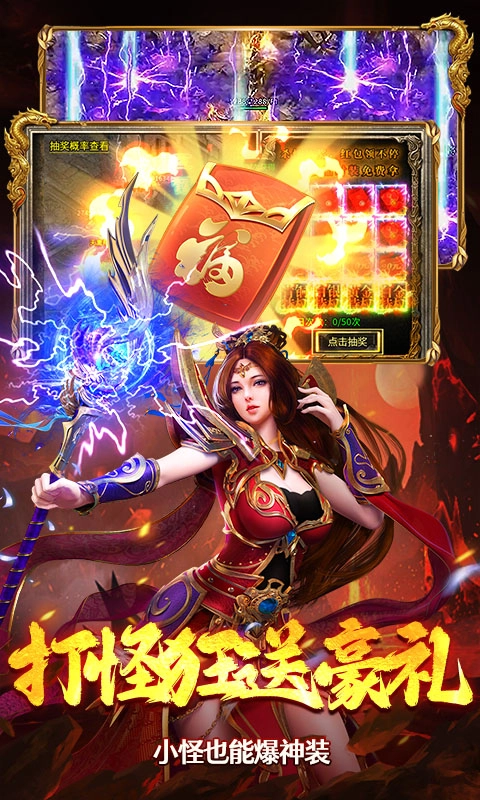 2、每日红包:杀怪抽奖,红包领不停;更有极品时装免费拿