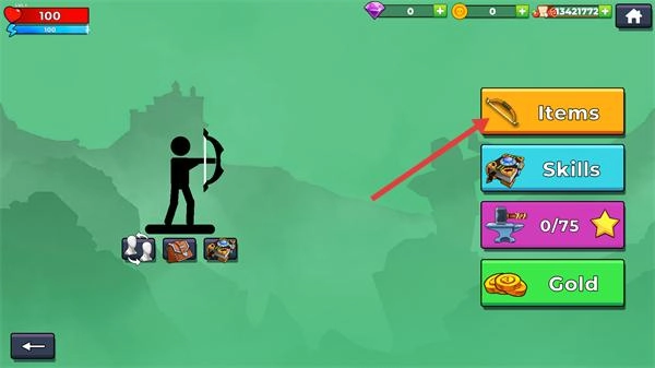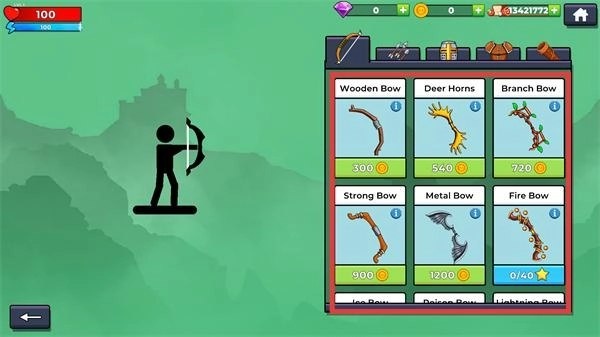 3、在武器栏中,消耗金币购买“WoodenBow”(300金币)等弓箭装备,提升角色的攻击能力。