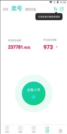 4、如果想要卖号,就点击“卖号”选项,进入相应页面后,点击“出售小号”,然后根据卖主的要求进行设置。