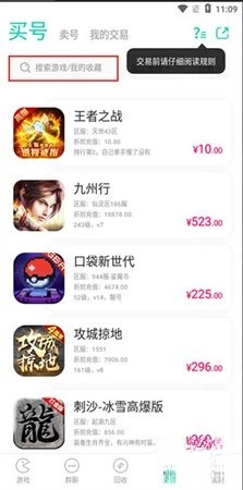 3、如果想要买号,就根据自己想购买的游戏进行搜索。