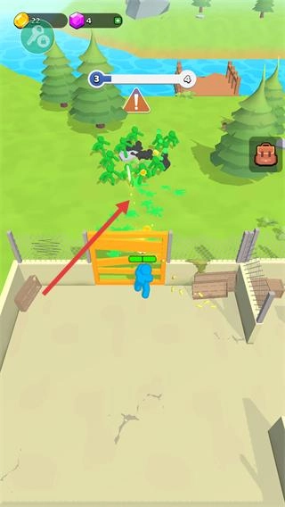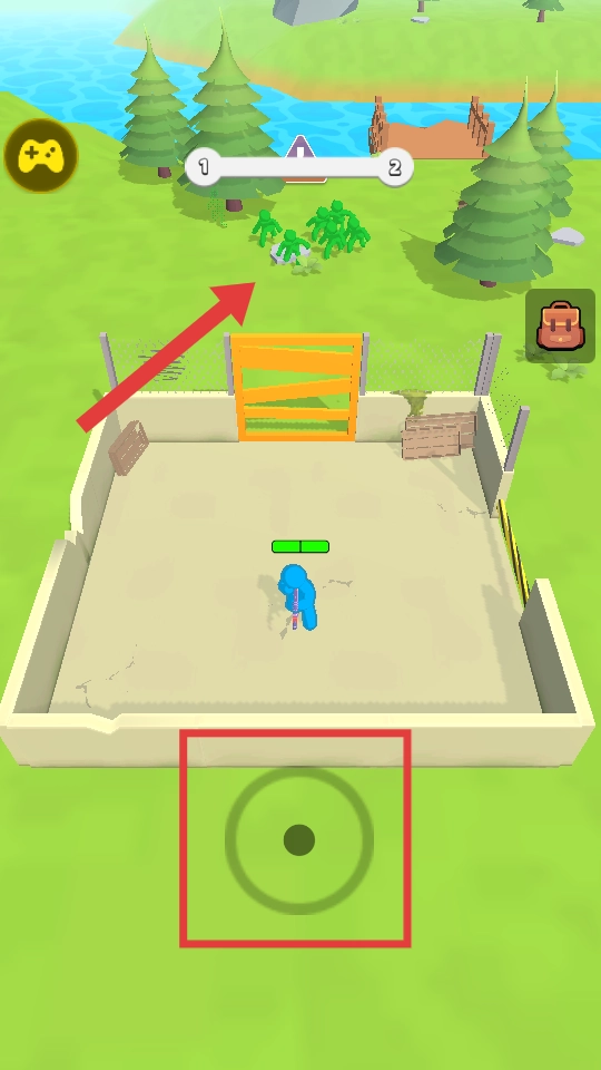 2、操控角色移动至围栏处,攻击场地外的绿色敌人,注意上方的计数进度,逐步推进战斗。