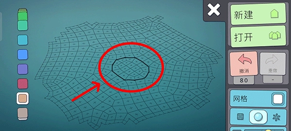 双指左右滑动屏幕,寻找如圆形、六边形等可形成闭环的规律布局。