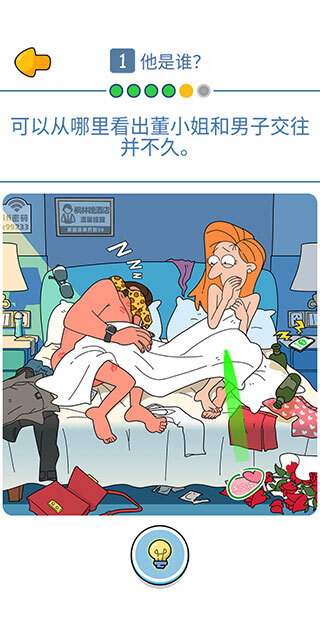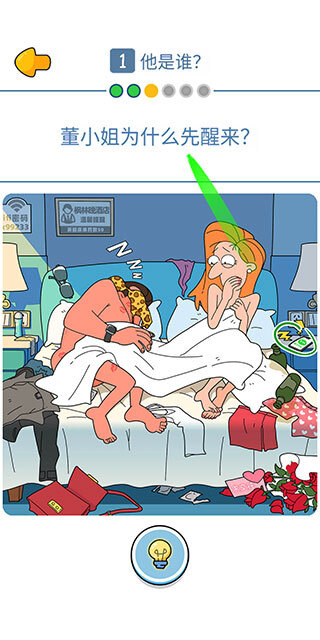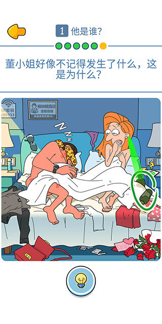 点击床上倾倒的酒瓶。