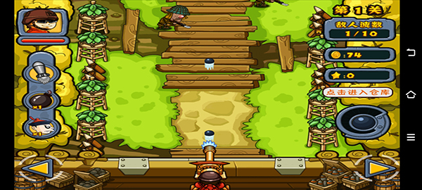 2、击倒来袭的敌人,守护城墙!游戏以城防守护为目的,帮助阿虎,通过9个不同的战役地形,每个关卡内分设多波敌人。