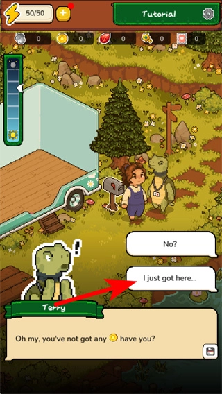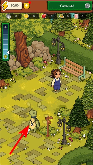 1、进入游戏界面后,操控角色移动至乌龟NPC处,触发互动开启剧情流程,这是推进游戏的关键操作。