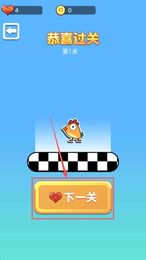 4.继续前进:成功过关后将显示“恭喜过关 第1关”,点击“下一关”即可进入后续挑战。