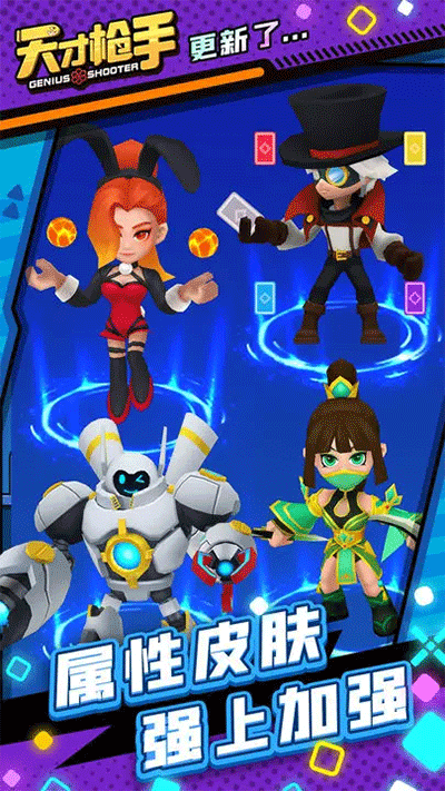 天才枪手免广告版是一款以卡通风格精心打造的枪战射击类游戏。在这款游戏里,有海量卡通英雄角色等你收集,只需更换角色,就能展现出全新的技能效果与属性。玩家要依据战场地形以及敌人的强度,挑选恰当的角色与枪械投入作战。游戏中,还会直面各种崎岖复杂的战场道路,这就需要玩家仔细观察道路信息,制定合理的行动路线,前往不同区域歼灭敌人。