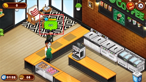 2、顾客出现时点击【接单】获取需求,明确顾客需要的咖啡品类,为后续制作咖啡做好准备提升服务效率。