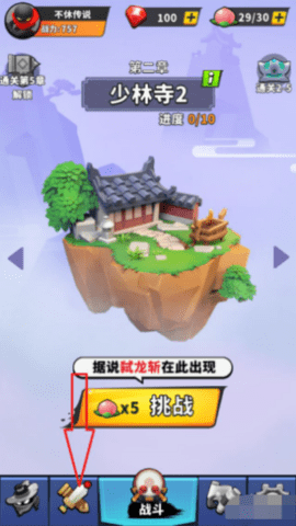 1、在不休传说游戏的主屏幕中,单击底部导航栏中的两把交叉剑图标。