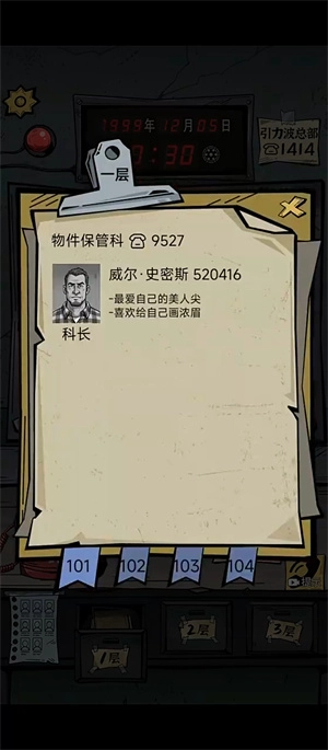 1、进入游戏,会出现一个来访者,首先点击下面的1层,就会出现基本信息